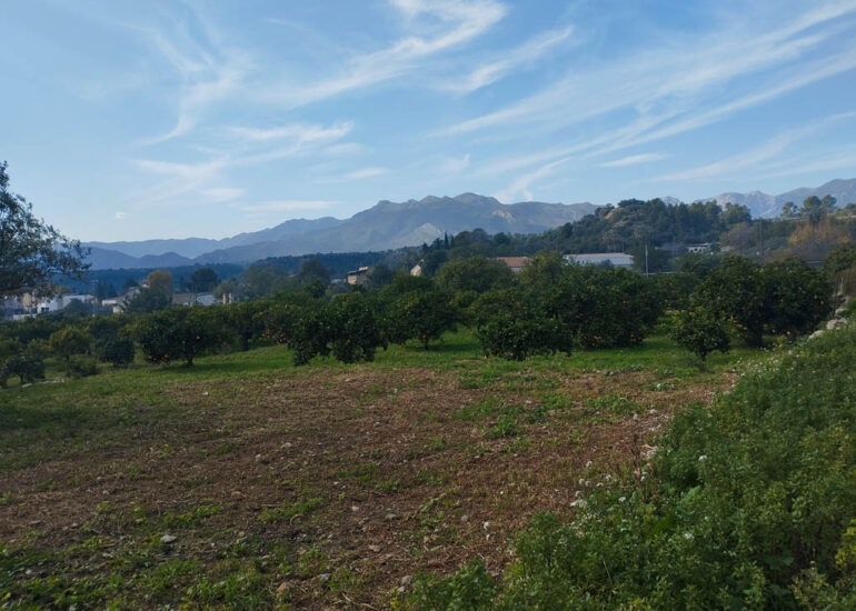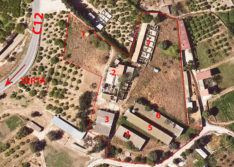 El terreny es de 12.716  m2 i es troba a 500 m. del centre de Xerta i per tant a 14 minuts de Tortosa.