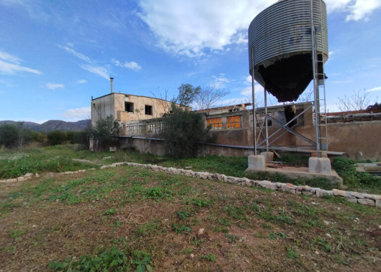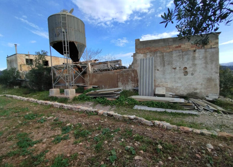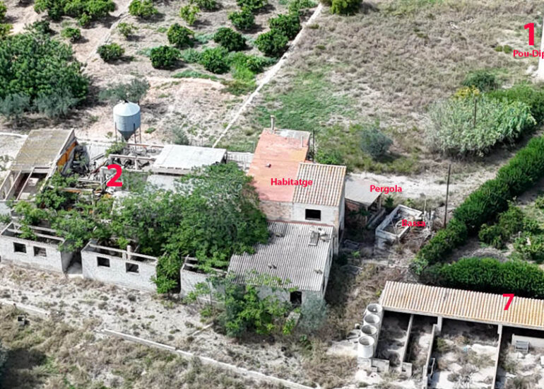 A Xerta oferim un terreny rústic amb un gran habitatge junt amb 1.926 m2 de construccions agropecuàries, magatzems. Baix Ebre. Tarragona.