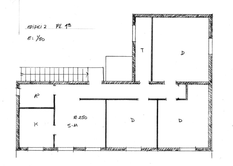 • Planta 1ª habitatge: 83.63 m2 Pot aprofitar-se la planta baixa per ampliar l'abitatge. De fet es un annexe al pis.